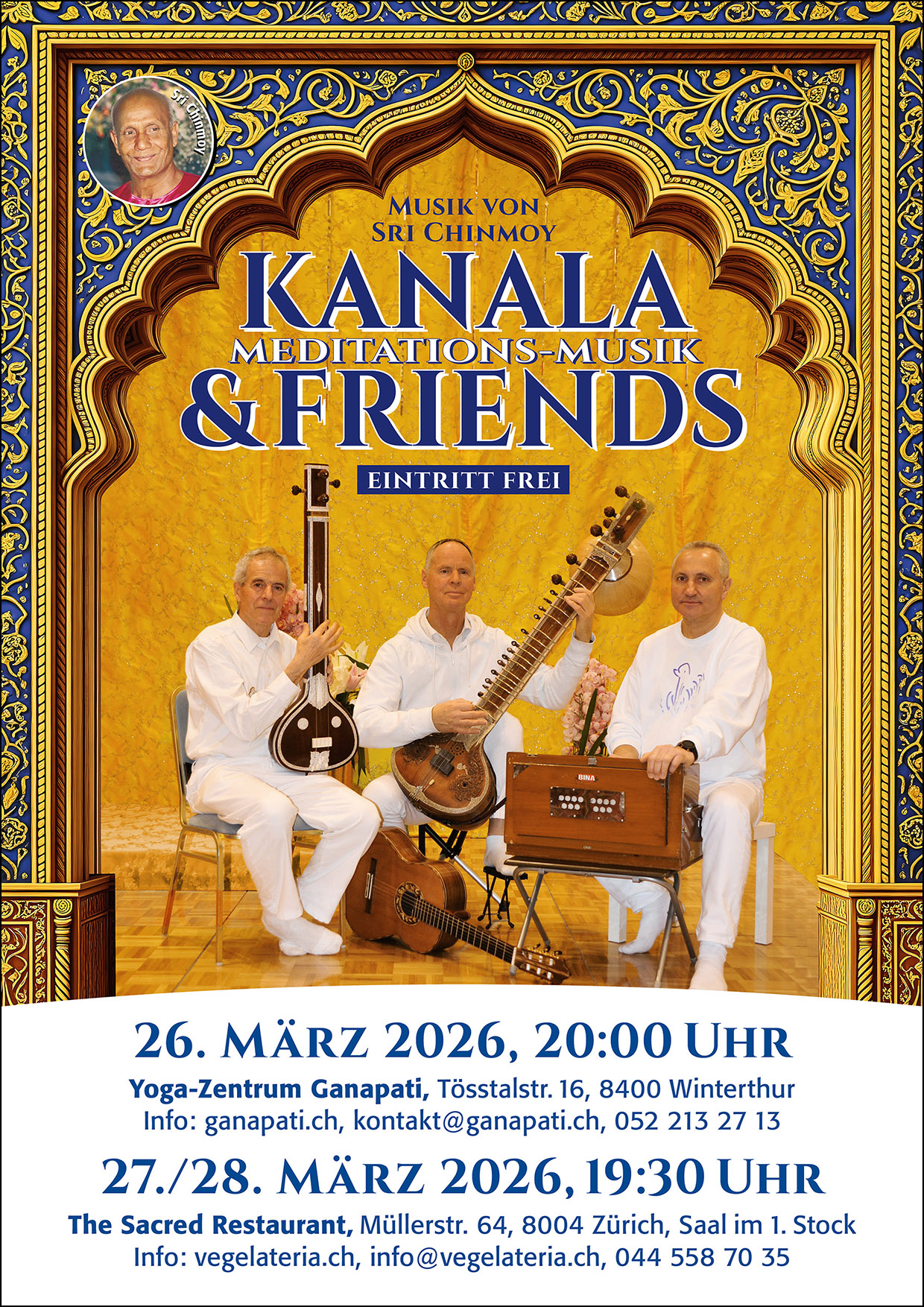 For over 20 years Kanala has been performing the profound melodies of meditation teacher Sri Chinmoy. His soulful and dynamic Sitar playing creates a profound atmosphere that allows the listener to easily enters a space of meditation and tranquillity. In that sense, the concert is a shared space where the musician and listener journey to an inner space beyond thoughts and words.